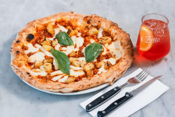 We’ve combined ’nduja Calabrese with our own ragu sauce, made in our kitchen from Rega plum tomatoes, carrots, celery, garlic and onions. Our drink of the month is a Fatto Summer Spritz – Campari, elderflower, Spumante and limonata. The drink offsets the slight spice of the pizza and is a beautiful pairing. Buon Appetito!