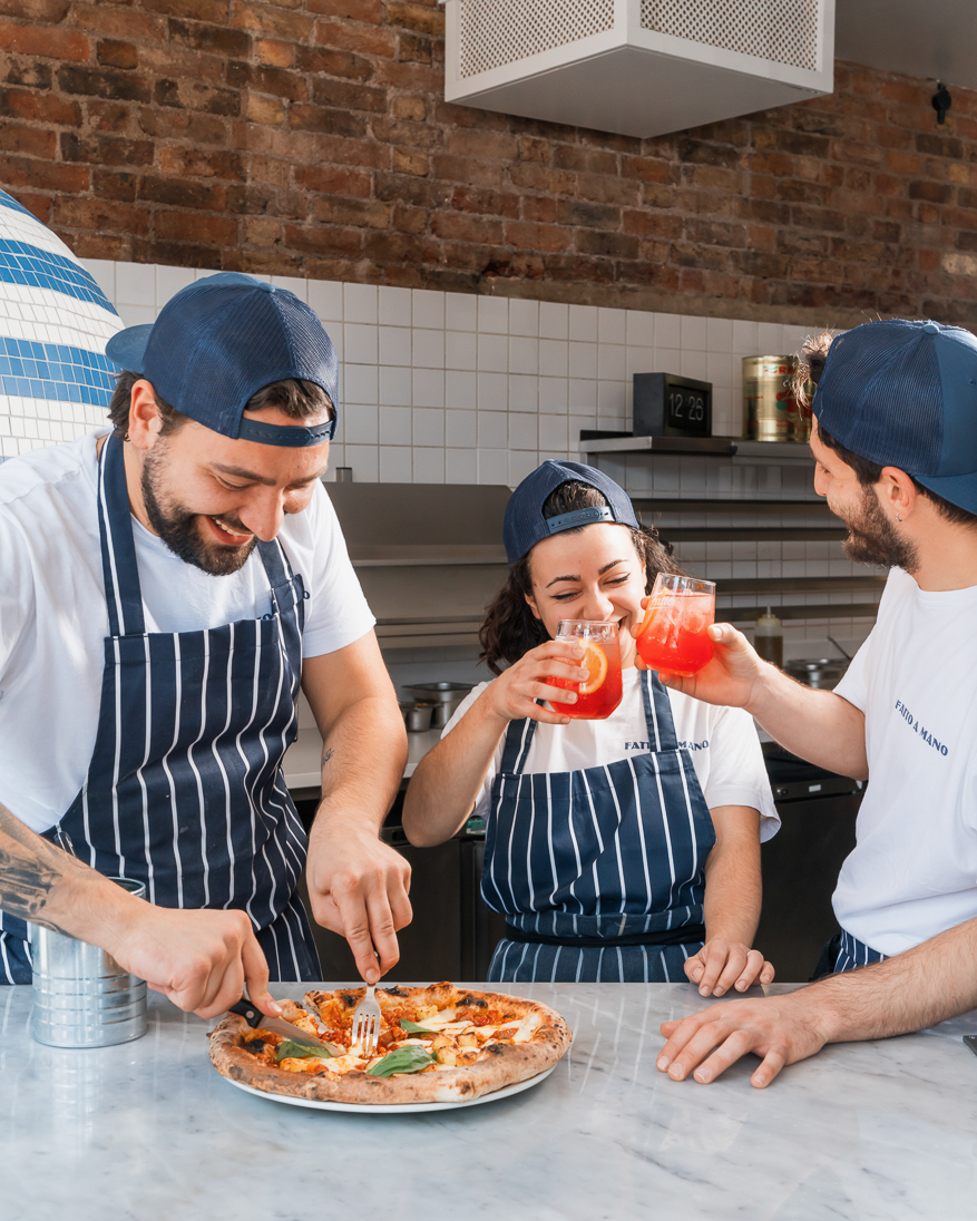 We’ve combined ’nduja Calabrese with our own ragu sauce, made in our kitchen from Rega plum tomatoes, carrots, celery, garlic and onions. Our drink of the month is a Fatto Summer Spritz – Campari, elderflower, Spumante and limonata. The drink offsets the slight spice of the pizza and is a beautiful pairing. Buon Appetito!