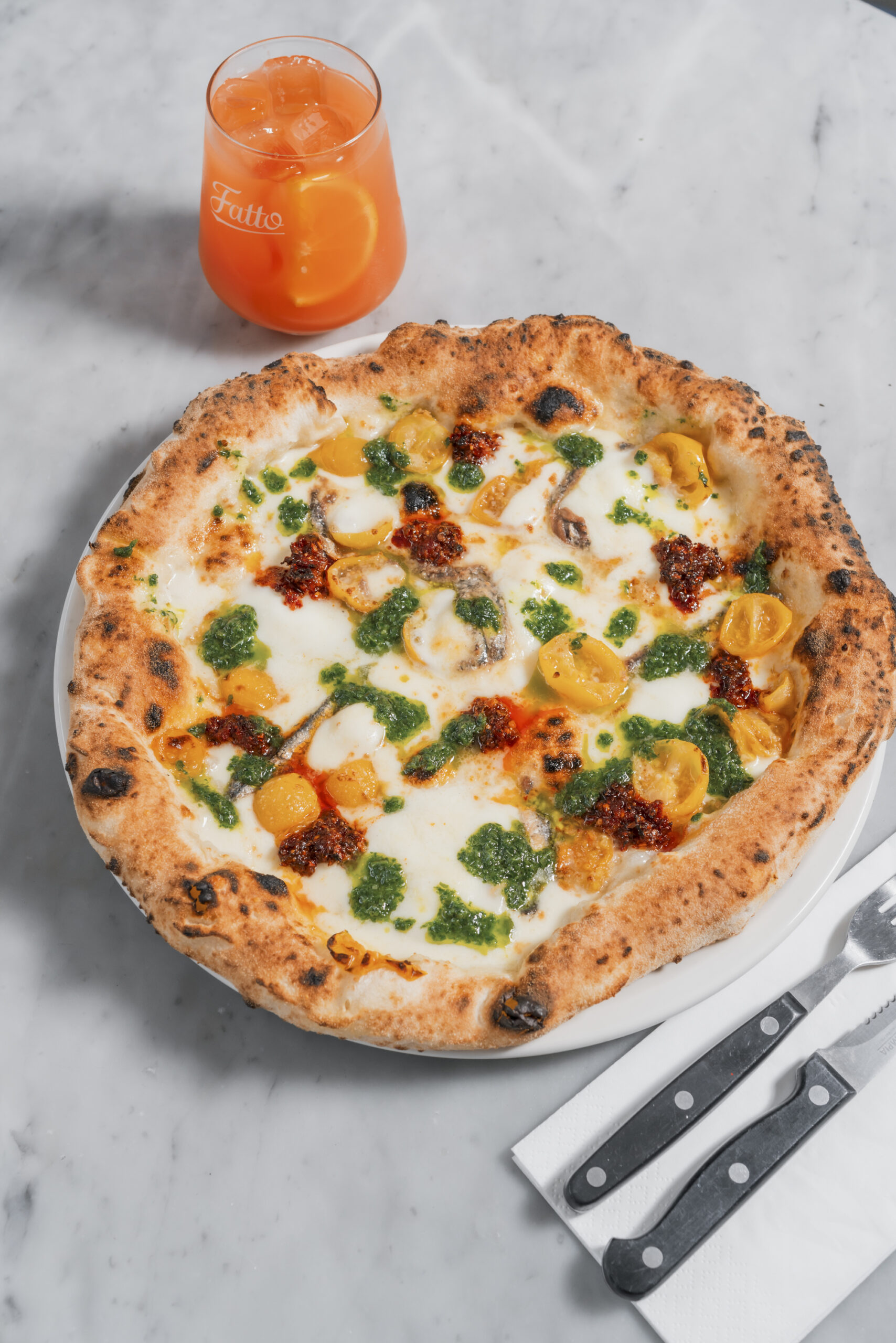 Cetara anchovies, ‘nduja, buffalo mozzarella, roasted yellow tomatoes, mozzarella, gremolata pesto