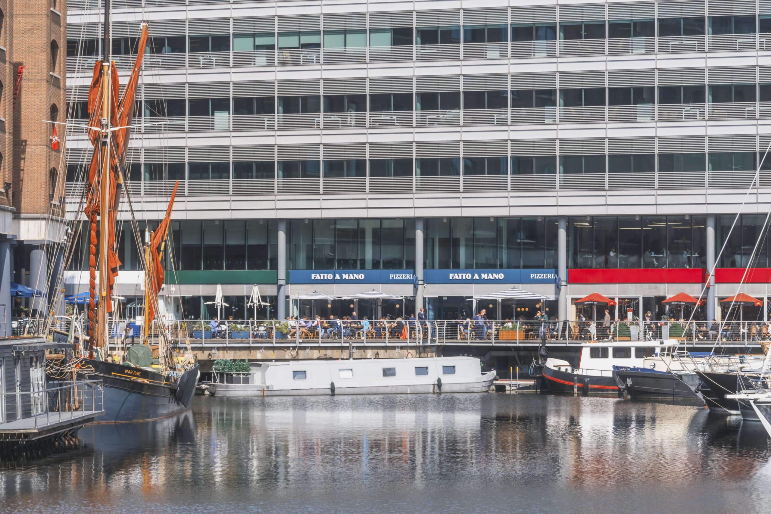 Our pizzeria is on the waterfront of St. Katherine Docks, a few minutes walk from Tower Bridge. We have a large outside terrace, bookable tables for parties of all sizes and counter seating over-looking our open kitchen to watch our pizzaioli in action.