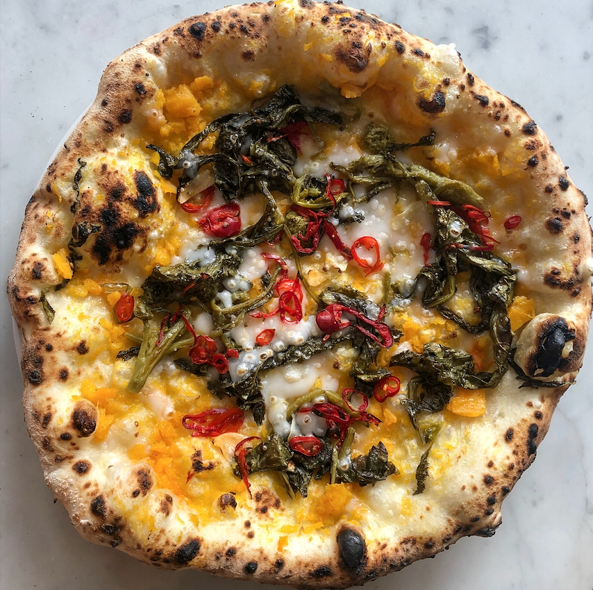 Creamed autumn squash, friarielli, chilli, roast garlic, vegan cheese (vegan)